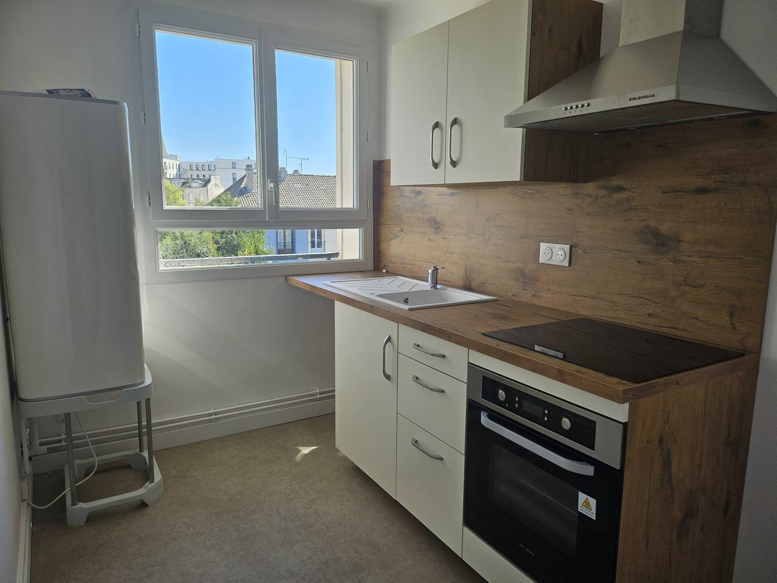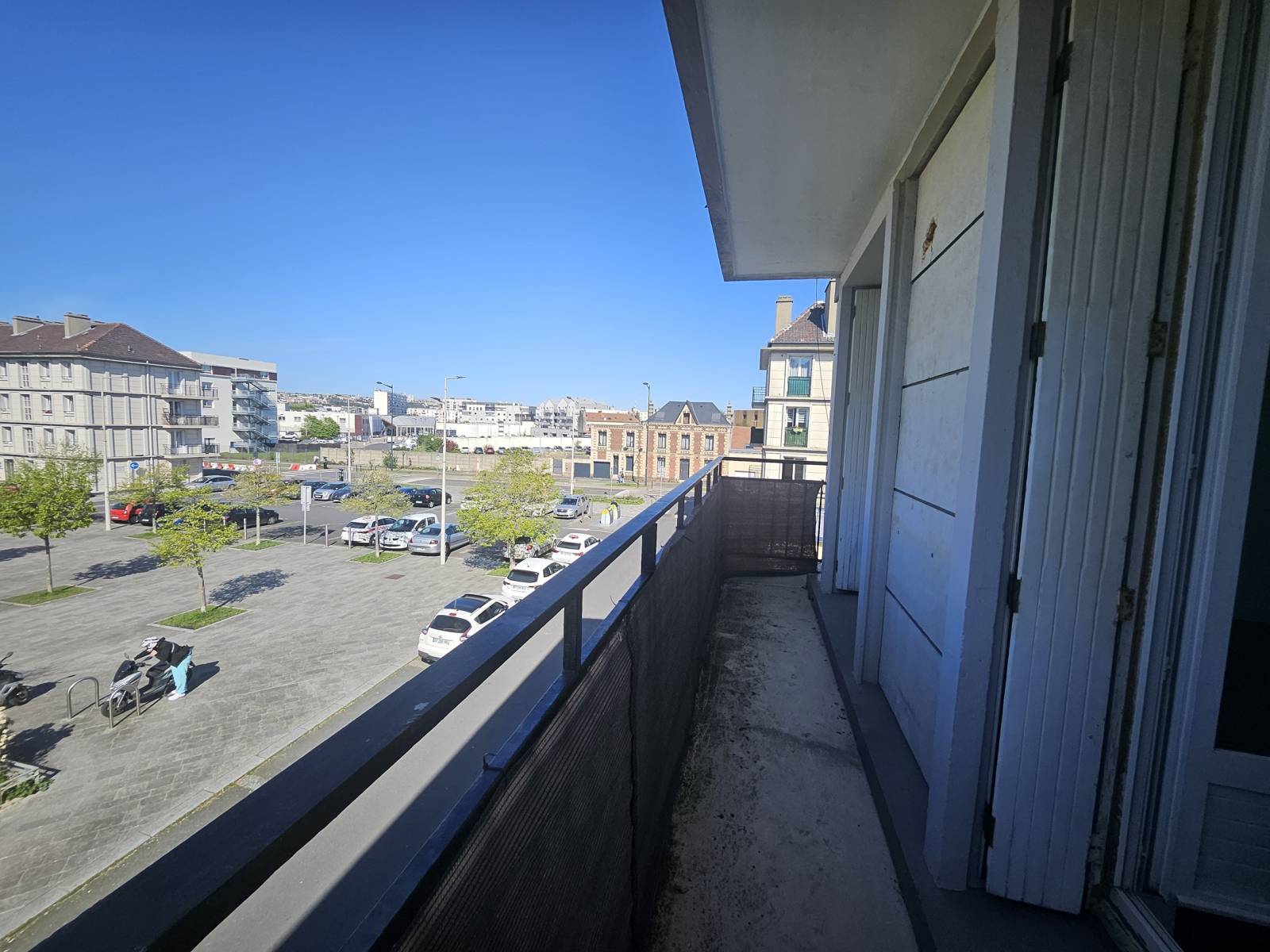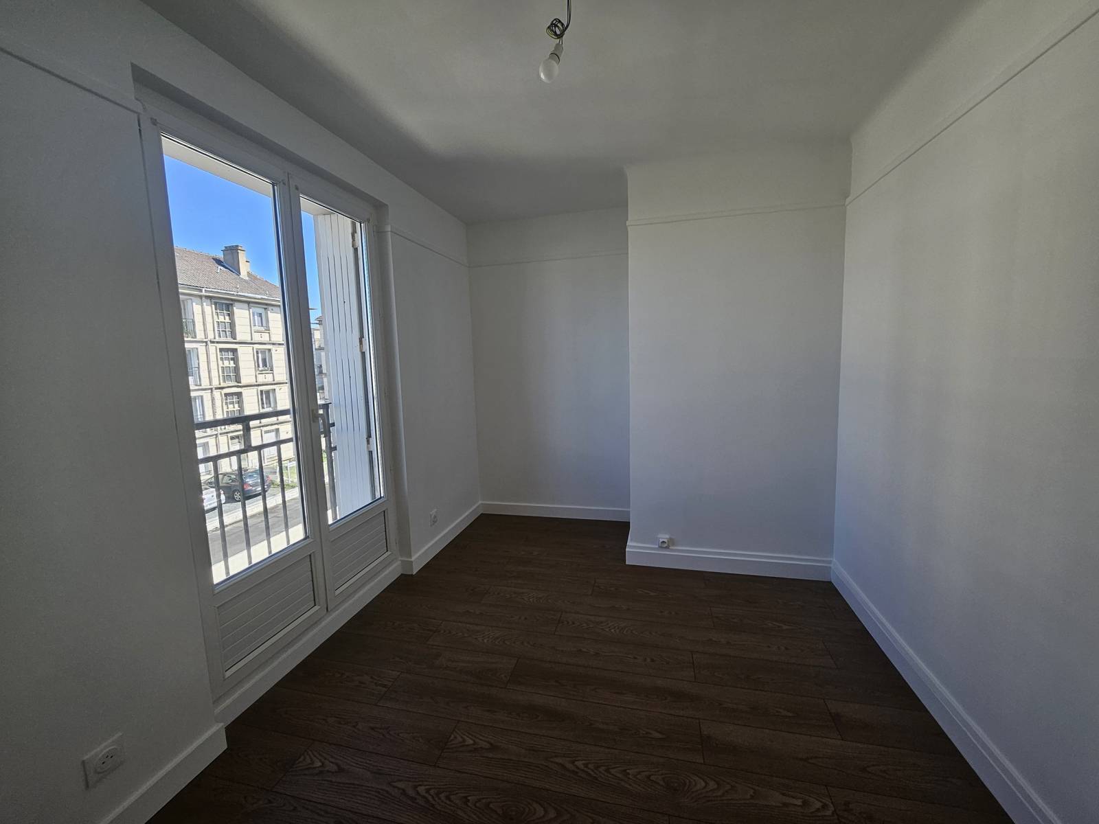 L'appartement libre à la location a été refait à neuf et bénéficie d'une jolie vue sur la place et d'un balcon.
