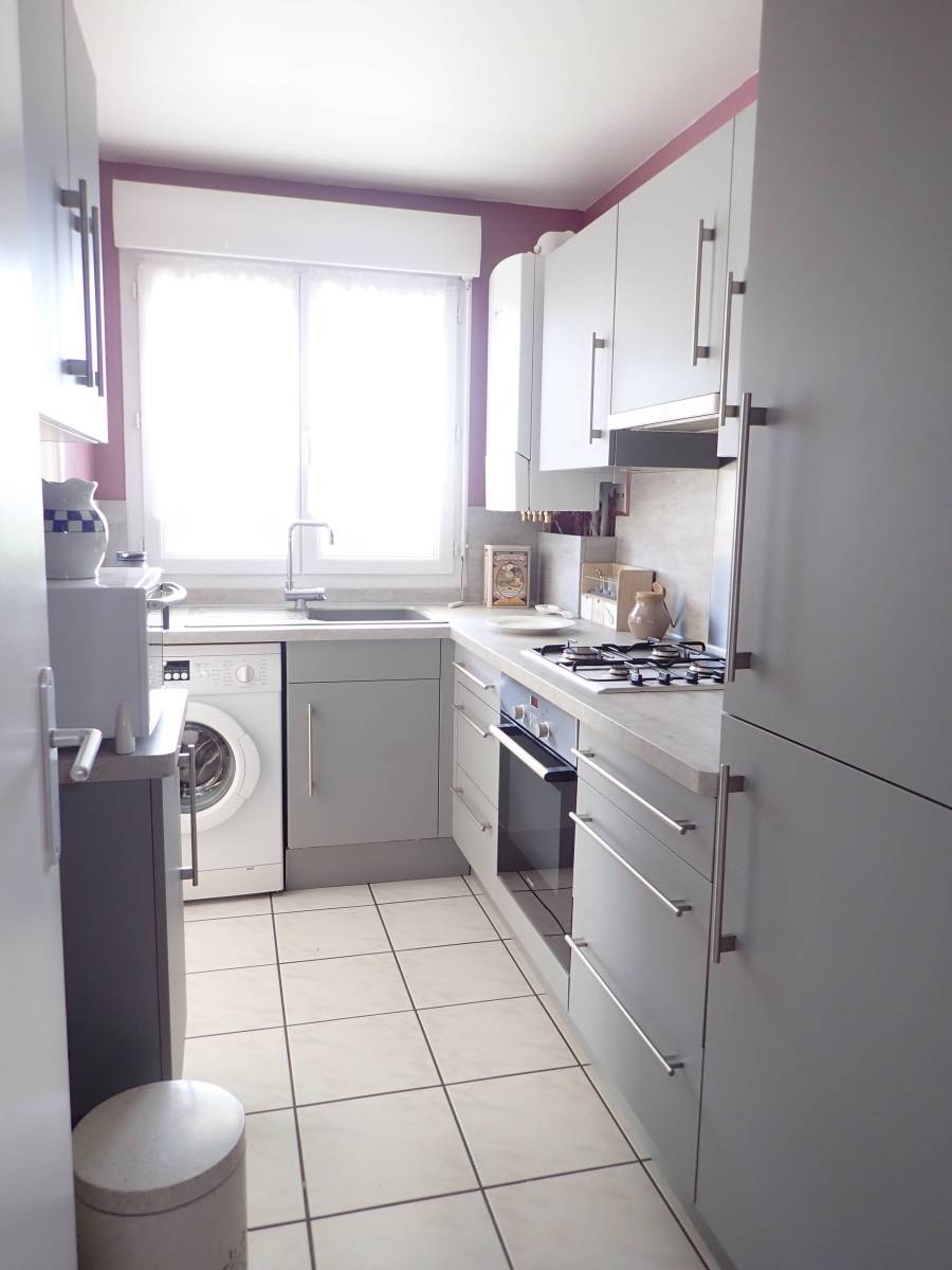 Entrée avec rangement, séjour ayant accès direct sur le balcon exposé sud - ouest, cuisine aménagée, 2 chambres, salle de douche, wc séparé.